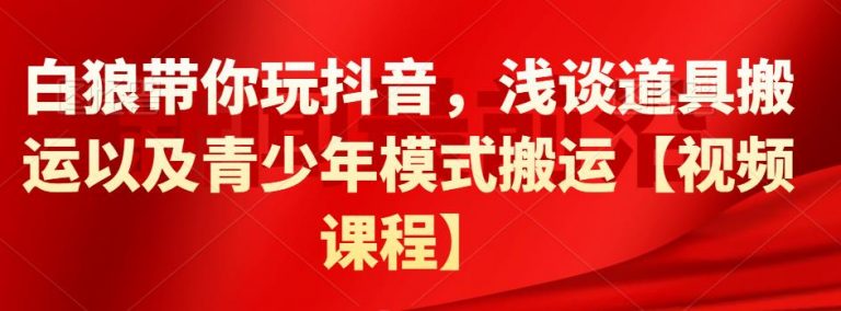 白狼带你玩抖音,浅谈道具搬运以及青少年模式搬运【视频课程】